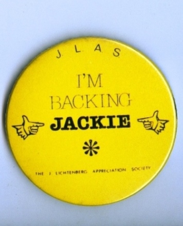 "This is jest disgraceful! We're going to call the police!" The paper was of course the Jacqueline Lichtenberg Appreciation Society newsletter. I hadn't seen it before, and on reading had great difficulty keeping a straight face. (For those others not in the know - it was a deliberately simplistic "fan club" letter loaded with ego bursting barbs). This letter had apparently been stuck on the walls of the hotel and conference centre.