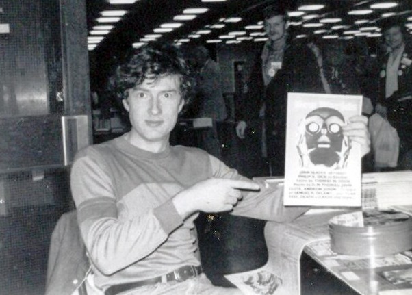 TERRY CARR: That SFWA Suite party, despite or maybe partly because of the energy generated by such rumours, was much fun and lasted till quite late. As a result, Sunday began late for me: I ran into Norman Spinrad when the Metropole coffee shop was between breakfast and lunch set-ups; Norman was hurting due to food poisoning at a Chinese restaurant the evening before and he wanted a tender breakfast. Janet Morris joined us, said she knew just the place, and we went there. It proved to be as high-quality as she'd promised, and we had a most enjoyable brunch. Janet was chagrined because she'd just had a discussion with Bantam's representatives about what sort of covers to put on the reissues of her fantasy series; she hadn't been pleased with the covers on the first printings not only because they were poor art but also because they were sexist. "And the best idea anyone could come up with for the new editions was to hire the artist who did the Gor covers!" She said she really just wanted simple covers this time, with a plain-coloured background on each and maybe the titles or bylines done in embossed lettering, perhaps a small drawing. I thought about that, and suggested that they contract with the sculptor Dale Enzenbacher to let them use small photos of some of his fantasy figures - this would certainly result in distinctive and attractive covers. She seemed to like this idea; but as to whether or not anything will come of it... " PETER ROBERTS: Sunday came along and the con seemed to have become a way of life; my hands were becoming steadier, so my system was adjusting and all must have been going well. However, the idea of Sunday morning fan panels no longer seemed all that attractive, so I checked with the panellists and rescheduled the programme to start with the final chat show (Harry Bell, Darroll Pardoe, Joseph Nicholas, and – you guessed – me chairing) at one o'clock; bright audience and receptive to the crop of fannish anecdotes and arguments. After that the fanzine auction – there weren't many but good grief they didn't half fetch high prices: up to £8 for TAFF reports and INNUENDOs and a quid or two for FOULERs and TRUE RATs. North American and British fans even kept up with some lunatic Swedish bidding. I started worrying about woodlice eating away at my fanzines stored away in Dawlish.