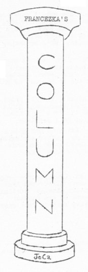 The recent outbreak of 'columnia anonymousia' (see The New Futurian No 2, and Andromeda No 5) has now spread to FEZ. We know nothing about the next item other than that it was posted in London. (And that much is fairly obvious from the nature of the article.) Mind you, being an anonymous contributor to FEZ can have one or two disadvantages on the financial side – if anyone worries about such things. This column I like! Can we have some more, Francezka?
