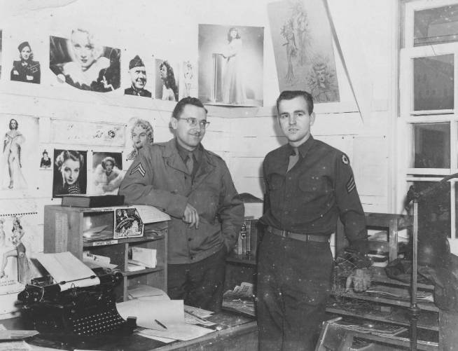 He did eventually meet his dream queen: Here's a photo of the office at Fort MacArthur from which the newspaper was produced, its walls festooned with signed photos of movie stars and the like: