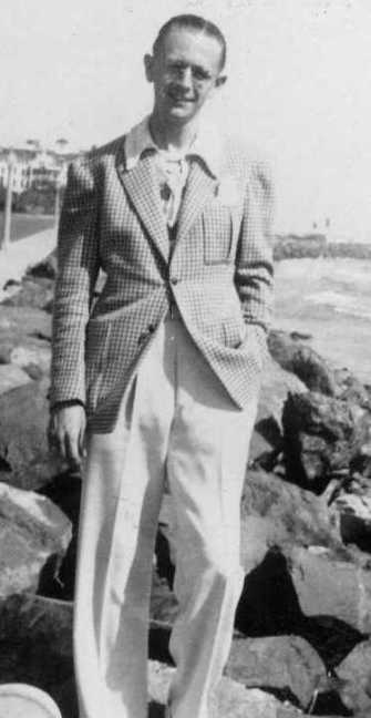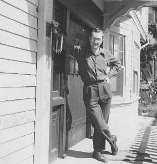 In 1941 the club, now renamed LASFS (Los Angeles Science Fantasy Society), left Clifton's for a new venue at 1055 Wilshire Boulevard. According to Daigherty it was: a large two story frame house at the corner of Wilshire and Bixel streets. This was the first time the club had a club room available 24 hours a day. The meeting room was the large front room of the house that was a rooming house. The photos of Ackerman below were clearly taken after the club became LASFS and before he was drafted in September 1942, and show the exterior of 1055.