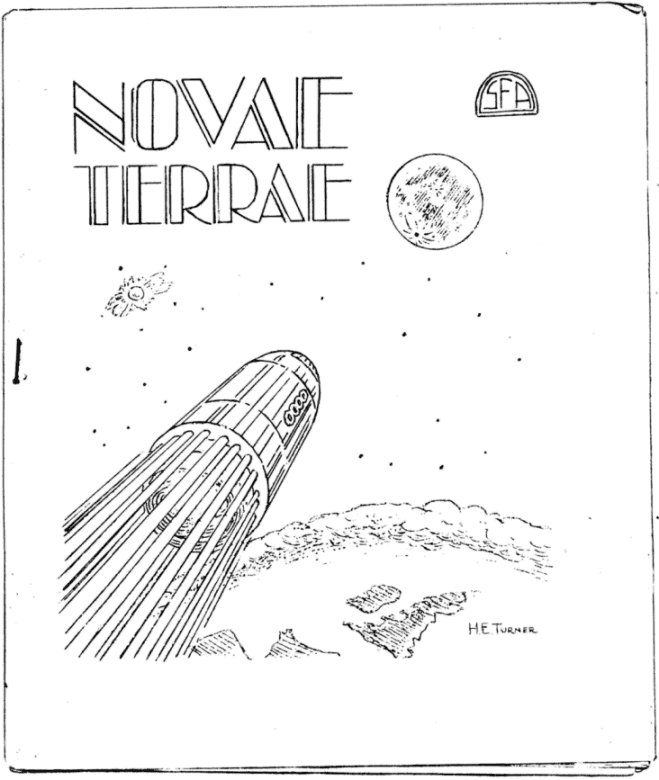 he would experience in all this if he produced the magazine. He must be lenient with us if of late he has found us everlastingly complaining of this and that. There are few things more productive of complaints than un-rewarded labour. So perhaps he will excuse me if I take the liberty of giving his thanks and my own to some of those who have contributed most to the magazine's success: to Dennis Jacques for a huge amount of work during the first year of the magazine's existence, to Ted Carnell, Will Temple and Arthur Clarke for unremitting toil at type-writer and duplicator during the past eighteen months, to Frank Dobby and Harry Turner for numerous covers; and to D.R. Smith and Ted Carnell for never-failing articles. "New Worlds" will be produced on a co-operative basis, no one person doing more than a reasonable amount of work, and assistance being recruited from fans all over the British Isles. For this reason it will succeed where "Novae Terrae" found insuperable obstacles, and where very nearly every other fan magazine that has existed has found insuperable obstacles. So it is that the time has come to write "Finis" to "Novae Terrae", and after all is done we feel that it has been decidedly worth the effort. In the words of the popular song, it often was a headache, but it was never a bore. Now, it is a thing of the past. Maurice K. Hanson