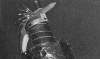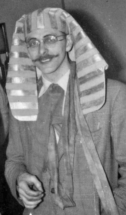 As a result of cartoons by Ray and others such as Lee Hoffman, drawing the propeller beanie on a figure became visual shorthand for a fan and some fans started wearing them to conventions. Several took this further by having multiple propellors on their beanies. Roles decided to take it to the limit and subvert the form entirely with his 'atomic' beanie. Whether this was also intended as a commentary on the arms race is unknown. The tie he's wearing features the famous image of one of E.E. 'Doc' Smith's lensmen as painted by Hubert Rogers for the cover of the October 1939 issue of Astounding Stories.