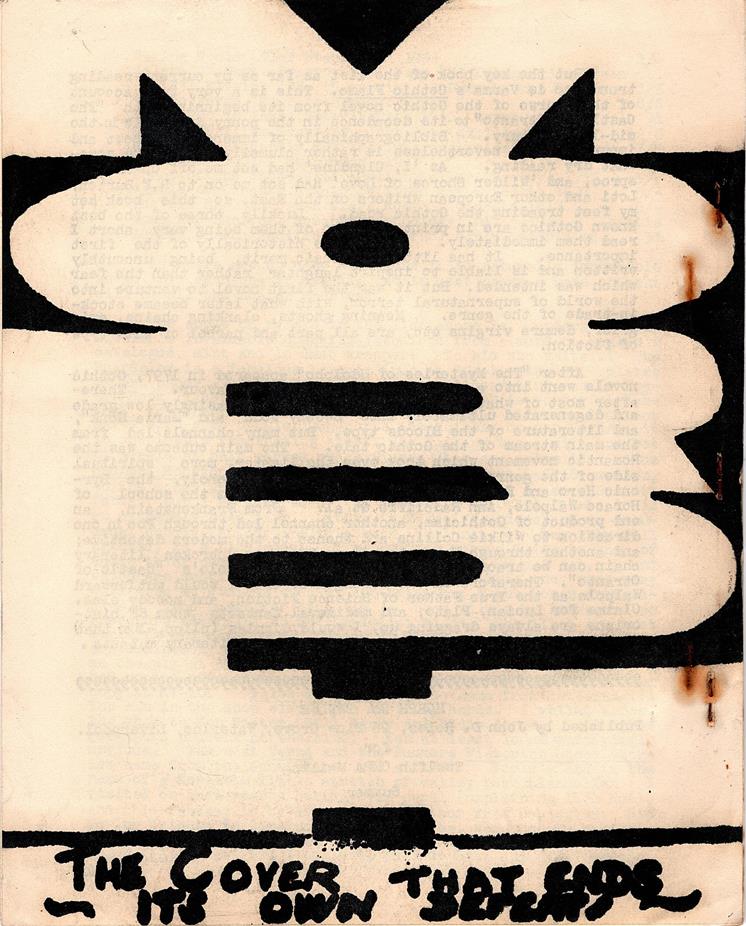 When we talk about fanzine art we inevitably mean drawings - cover art, cartoons, and the like. John Roles (1925-1999) was not a fanartist in that traditional sense, but though he didn't draw he certainly created art. Most of this he produced for OMPA, the Off-trails Magazine Publisher's Association, an APA whose members would submit fanzines for distribution with its quarterly mailings. According to Vinc Clarke: