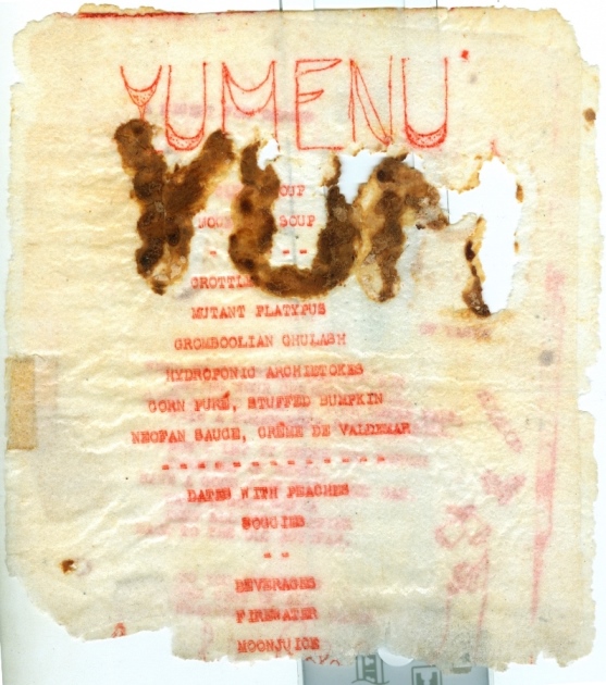 YUM YUM, YUM YUM YUM, YUM YUM YUM YUM, & YUM YUM YUM YUM YUM (1955-58) Subsequent iterations of YUM were issued every December with the second being titled YUM YUM, the third YUM YUM YUM, and so on. Printed using multi-coloured ink on multi-coloured paper in a dazzling variety of combinations not all of which were entirely successful, these tiny publications were prime examples of the fanzine as artefact, small objects of desire. And all non-edible. Yet none of them was the smallest fanzine ever produced. That honour probably belongs to the one Forry Ackerman stamped out on individual dog tags during WW2, none of which are known to have survived.