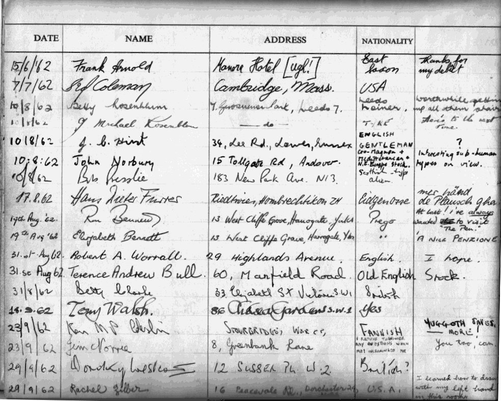 THE SCIENCE FICTION CLUB OF LONDON VISITOR'S BOOK (page 3)