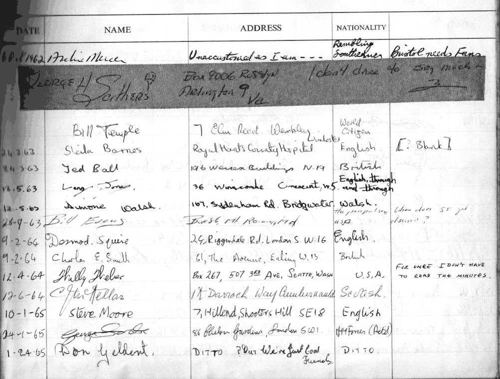 THE SCIENCE FICTION CLUB OF LONDON VISITOR'S BOOK (page 4)