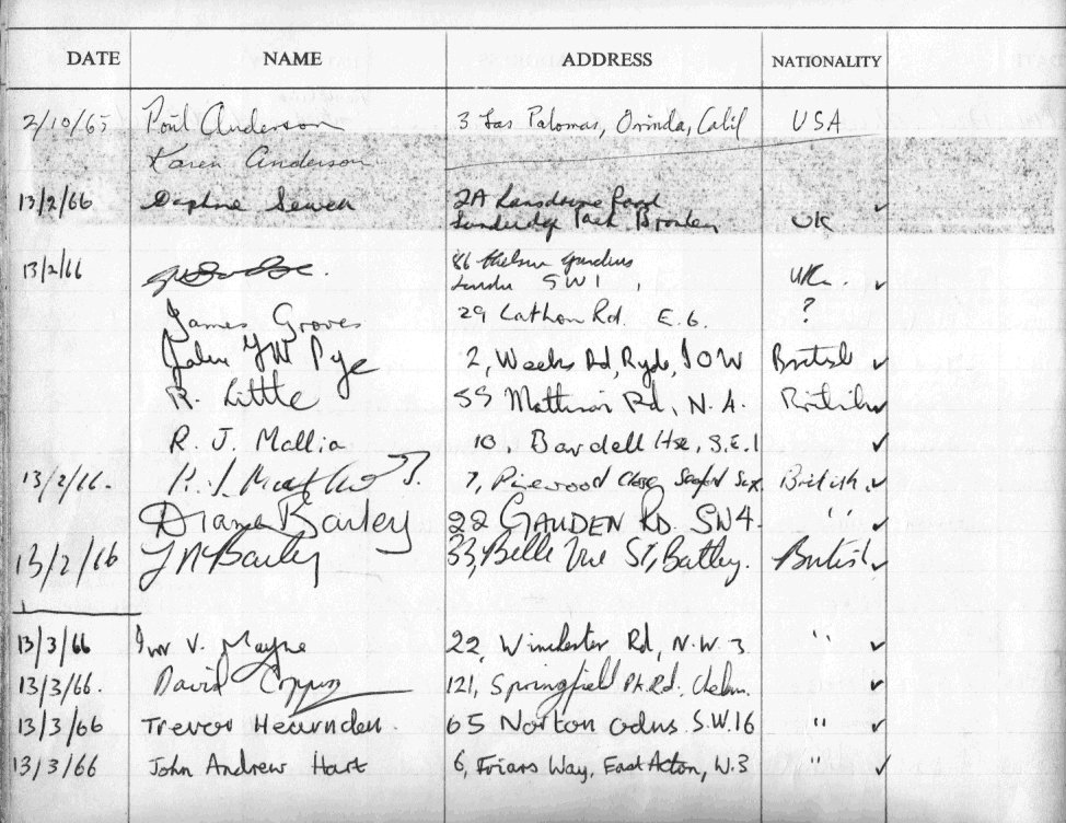THE SCIENCE FICTION CLUB OF LONDON VISITOR'S BOOK (page 5)
