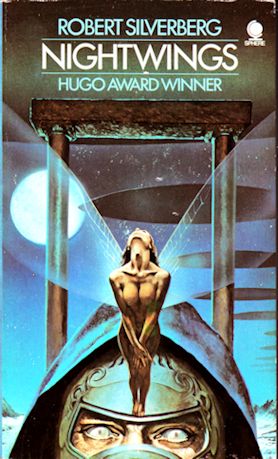 As for book covers, this photo from the 1979 Worldcon in Brighton, England, shows a friend in costume as Avluela from Robert Silverberg's NIGHTWINGS, specifically the image of Avluela on the cover of the contemporary UK edition, also shown. And, yes, the photo is used here with my friend's permission though without her name attached because this is the Internet. Although the photo doesn't show this, the wings were as long as those depicted on the cover, which meant a couple of attendants were required to support them. I really should have taken a longer shot. I'm not sure how much earlier you could have got away with such a costume - or if you'd want to chance it at some much more recent conventions given reports of the harassment female cosplayers have been encountering.