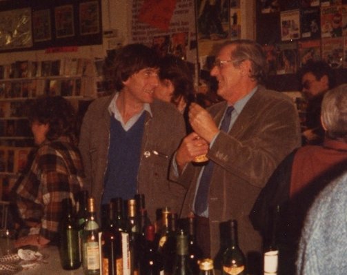 (Launch party photos supplied by Roy Kettle, photographer unknown. The Troy Club was the favourite late-night watering hole of Brosnan et al back then. Just a room with a bar, it was located above a shabby record shop on Hanway Street, behind Oxford Street. Before the licensing laws were changed in 2005, it was one of the few places you could sit down and have a drink in the area after 11pm that wasn't a noisy dance venue. You had to become a member to get in, but this just involved giving them a quid and them handing you a card and asking you to sign it. There's still a Troy Club there, but based on its webpage it bears little resemblance to the slightly seedy place it was in the eighties.)