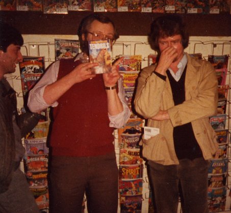 Among those present were Rob Holdstock, Dave Langford, Malcolm Edwards, Neil Gaiman, Chris Priest, Brian Aldiss, Gamma, Dave Hodson, Peter Nicholls, Kim Newman, John & Eve Harvey, FP head honcho Nick Landau, etc. I chatted to Landau for a while about comics v SF fandom, but think I created a bad impression. Overall, though, I had an OK time. When things were winding down later, many of us trooped over to the Troy Club, where we drank more drink. We spent several hours here, with Avedon and I catching the last tube home.