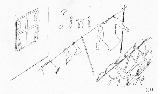 But I still haven't found any meat for an interesting letter. Well, maybe one teeny-weeny little pointlet – that of stylus. Strikes me you've been going a long way round to get one. Now I've just had cause to cut me a stencil, and for stylus I used the point of a compass – opened out full-length for easier gripping. And it worked perfectly. Of course, I fully realise that a compass (geometrical, of course, not geographical) probably doesn't figure in the normal equipment of an Army Pay Office. ((How else could we fiddle Estimates in round figures?)) Can't you go to the stationery bloke and tell him you want to draft a circular