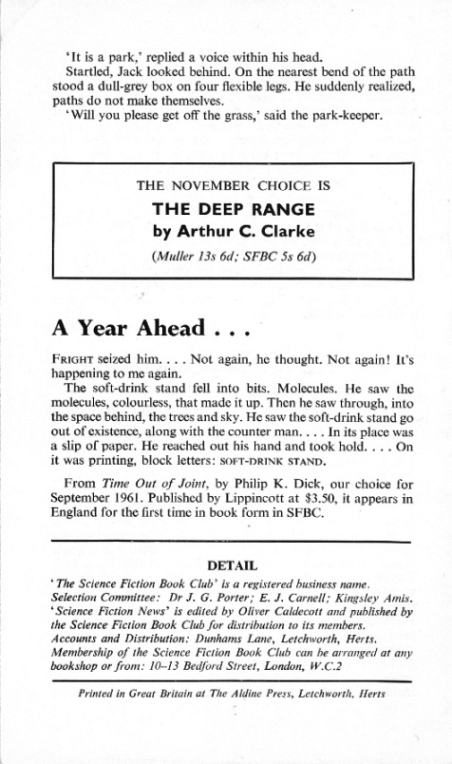 SCIENCE FICTION NEWS was the newsletter of the UK's Science Fiction Book Club (SFBC).