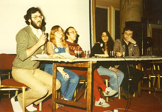 The session went,off reasonably well with Holdstock, Charnock, and I doing most of the speaking, and I noted with some satisfaction that while the Eurocon people were trying to imply that anyone who opposed their bid had to be xenophobic we were the bid who had foreign nationals on our panel in the form of Linda Pickersgill and Avedon Carol, the latter having been drafted in as 1984CON's American representative after some last minute persuasion. Maybe they weren't European but they did at least speak English (well, sort of). Standing outside the hall after the ALBACON bidding session, toying with a pint of bitter and watching anxiously as convention members registered their vote by exiting through the appropriate door, it seemed impossible that I had started on the long and often-frustrating road that had brought me to this time and place simply by calling round to the Duckett Road residence of Malcolm Edwards and Chris Atkinson for a drink with them and a few others. It had started with a conversation about the then-recent abortive bid to secure the 1985 Worldcon for Britain and the sour taste left by the unnecessarily snide comment this bid received in some sections of the Australian fan press. From there it was but a short step to the John Brunner inspired combined Eurocon/Eastercon bid, an idea we all had misgivings about. The holding of a Eurocon in the UK was something we all supported and long overdue but we weren't too happy about it being combined with the Eastercon, particularly as it appeared we were being railroaded into it by John Brunner (see DRUNKARD'S TALK 4 under 'moral blackmail'). The possible consequences of such an unholy marriage could have a profound and far-reaching effect on future Eastercons and so it seemed wholly wrong to us that Brunner's bid should proceed unopposed. It was both necessary to explain what could happen if this union came to pass and, we realised, to provide a viable alternative. And so the 1984CON bid came into being.