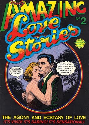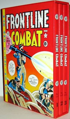 "God, this stuff is appallingly adolescent!" Indeed it was. Attracted by the number of improbably large breasts and penises on display I gazed at its pages over Alan's shoulder and could only agree with him, while being somewhat bemused by the 'splik splik, splek splek' sound effect used to denote various sexual squelchings. It was so appallingly adolescent in fact that Alun felt duty-bound to buy a copy of this disgusting comic book for closer examination under the privacy of his own bedsheets. 'Splik splik, splek splek' (Inconsiderate little fucker bought the last copy as well.) Elsewhere in the hall a distraught Greg Pickersgill was wrestling with his conscience. Could he really justify squandering £40-worth of perfectly good credit on one of the Russ Cochran's boxed reprint editions of EC's FRONTLINE COMBAT, or should he save it for next week's groceries?