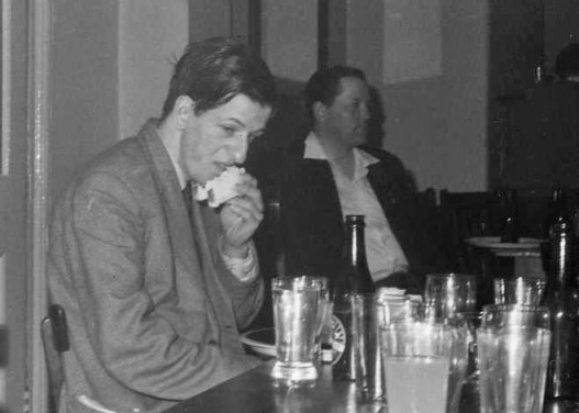 Monday 11th AprilDownstairs at 5.30 Boris made me a nice breakfast which I ate in the deathly quiet Devils Kitchen lounge. Boris told me that everyone on the staff were very pleased with the convention and that fans were the friendliest nicest and most generous people he's ever met. This was the egoboo I collected on behalf of fandom. Before leaving the hotel I saw Wansborough who was wandering around the hotel obviously gathering inspiration for his next poem. I bid him farewell and left, feeling depressed and sad that such a wonderful weekend had come to an end.Ten minutes later I was back. My train had been cancelled and the next one was not due until 10 am. I was glad I could stay in the hotel for a few more hours. I collected my keys from Boris and on my way to my room I met Marriott. She had been locked out of her room so I invited her in to mine. We stayed there until eight, talking of fannish things, and came down for breakfast, my second. Most folk were surprised to see me still around. I was surprised myself. After the morning grub I sat in the now noisy Devils Kitchen with Archie, Shirley and a few others until ten. This time I really left, accompanied by Terry Jeeves, Ron Bennett and Irene Boothroyd on the train back. However, on our way to the station there were Marriott, Oosterbaan, Harry Clements, and one or two others dotted up and down the road. We bid our farewells, took a few photographs and then Terry and I went into the station. Just then, as most fen were leaving, a strange thing happened, the 'all-clear.' sirens echoed over the countryside! "Well of all the cheeky blighters!" gasped Terry as our train pulled out of the station, "Fancy that!"