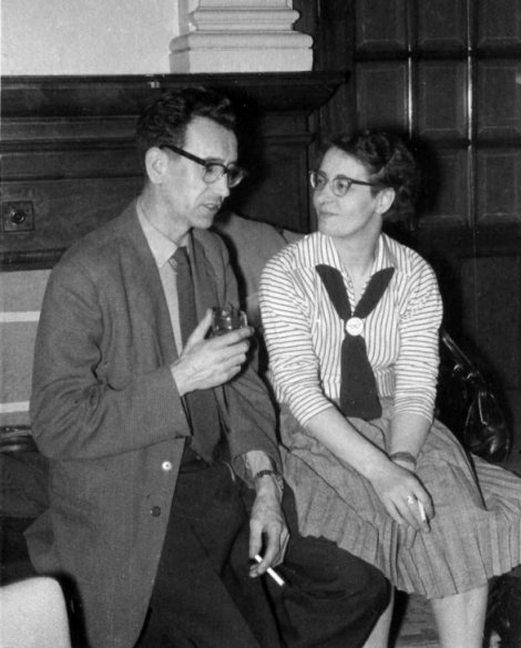 Ted had planned to go on home and left. A few minutes later I was down in the lobby when he called me over to where he and Dave Kyle were talking to a Miss Bellamy, a newspaper woman from New Hampshire somewhere. She was hipped on flying saucers and had noted the s-f con on the lobby bulletin board. It just so happened that she was on an European tour and was staying at the Kingsley. She related some of the sightings she'd written about in her newspaper work. The movie, "The Day The Earth Stood Still" was now being shown in the con hall and after her taking a few notes for a possible column in her hometown newspaper, she adjourned to the con hall and Ted got his chance to dart out the door and head for home, now considerably later than he'd anticipated on leaving. BOBBIE GRAY: The professional film stood the test of time fairly well and it was during this film - just beforehand rather that we met an American girl, Ernestine Hope Bellamy, who had actually seen U.F.O.s. I had always kept an open mind about the things myself, but I was curious and we talked to her afterwards about it. And I should like to say right now that Miss Hope Bellamy was no crank, but a very intelligent young lady. DON FORD: I watched the end of the movie and then circulated around a bit. A number of fans were leaving the con, now. Next stop was Ethel Lindsay's room where an OMPA gathering was in progress. ARCHIE MERCER: In spite of'the absence of members who weren't staying at the hotel that night, the room was packed - there must have been about half the OMPA membership there, which is a pretty good proportion, and we had an interesting session. Eventually President Joy wound up the official proceedings of OMPA and we were told to go and fetch any bottles we had in order to convert the meeting into a room-party. I went to fetch my Drambuie, then realised that there was still something missing. "Hold on", I said as I slipped through the door again, "I've forgotten my glass." Mike Moorcook was in the corridor outside, Did I want a glass? He had one right there. He knocked on a door, and Sandra Hall let us in. Mike shoved two bar-glasses into my hands, I thanked him and prepared to depart. "While you're here," said Mike (or words to that effect) - and started talking. I answered. Two or three or five minutes leter I picked up the glasses again and prepared to depart. Mike kept on talking, Sandra helping out occasionally. Eventually I gave in, produced the Drambuie, and we settled down for a session. An hour or two later, when THAT room-party broke up, I returned to Ethel's and Audrey's room to find that it was still fairly lively - but with hardly any of those originally present. That's fandom for you - never any shortage of sidetracks, Dave Kyle was there showing binocular slides of his home - "Viewmaster" or something, 3D style. Looking at these, I discovered that I have something unsuspected in common with Dave - we both live in caravans. I told him that Phil Rogers was another. Dave said he'd met him over the week-end but hadn't suspected it either. DON FORD: Ron Bennett, Sandy Sanderson, Eric Bentcliffe and myself adjourned to my room for a brief TAFF discussion. Mal Ashworth had left. We discussed whether there should be any changes in the TAFF setup for the immediate future and after some discussion decided that only minor changes were necessary; that TAFF had worked in the past and should be able to do so in the future. Next fans started drifting in and before long only standing room was available. Bob Parkinson auctioned off half his beard for TAFF and raised well over a pound I believe. I was chosen as the one to do the job and started hacking away with my razor, saying: "This reminds me of my old job...I used to be an orderly in a maternity ward."