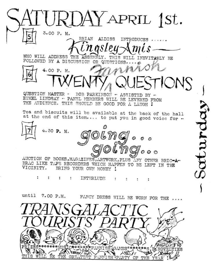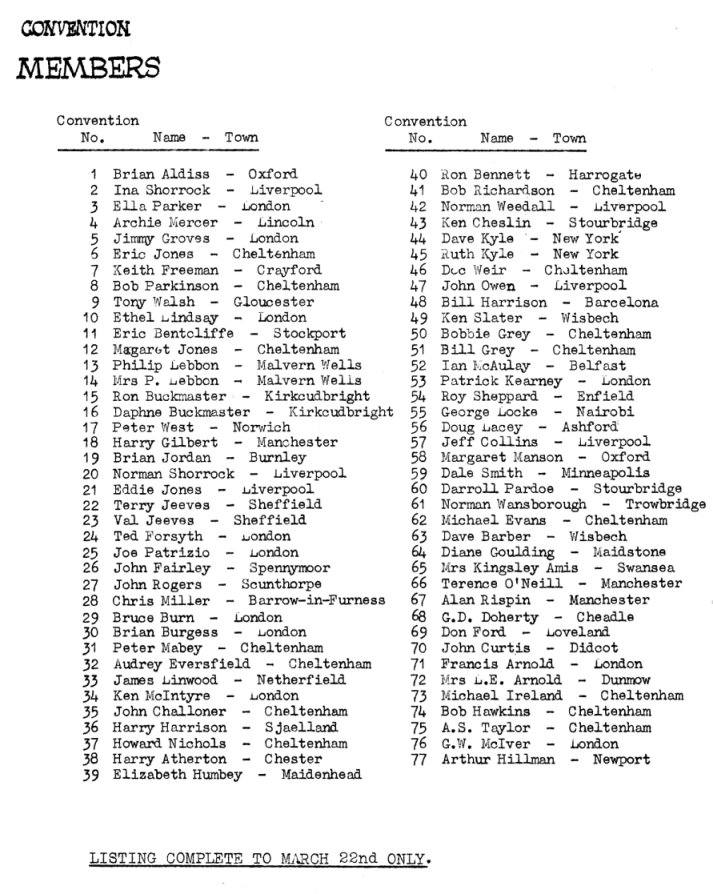 Aldiss, Ted Tubb, Ken Bulmer, Don Geldart, Arthur Thomson and Jimmy Rattigan, though