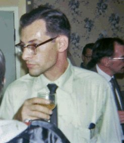 PETE GRAHAM: "You're putting the horse before the D'Oyly Carte," said Walter. I think it was in my hotel room at the Loncon. I don't know which night. Two nights of the three there were parties in my room, and the other night I went to the party in the Carrs'. Each convention I go to gets better; I think it may be because at each one I feel less like being a fan and more like being friendly with the people there whom I know and like. The Washington convention in 1963 was good, but in London there were the same people I liked (Carrs, Ellik, Raeburn) plus many more, like Walter A. Willis. I decided to play grand host, which meant buying liquor and throwing a party. Also, I decorated my room: I put up maps of England and Ireland on the walls.