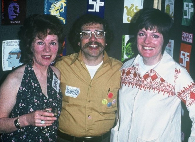 I referred to the Moffatts as 'unofficial FGoHs' earlier because of things such as sitting on the top table at the banquet, giving speeches there, etc. Had the committee known beforehand there would be enough money to cover their hotel bill I suspect this would have been official. JUNE MOFFATT: At some point we were sitting in the lobby, chatting with Dave Rowe and others. He had been telling a story about being overcharged at some restaurant, and started to say "bloody". Actually, he got about as far as "bl - er - excuse my French!" I laughed, and assured him that it was harmless as far as I was concerned. We know that it is a Naughty Word in England, but it has no emotional content for us. (Besides, anyone who's stayed with Ella Parker can't be shocked by it!) Dave seemed to accept my explanation. Later, when I told Marsha about it, she looked at me and said, "Well! Nobody ever excuses themselves when they say that to me!" I told her it was because I looked so Sweet and Innocent. It was later when she found out that I'm really just as vulgar as she is....
