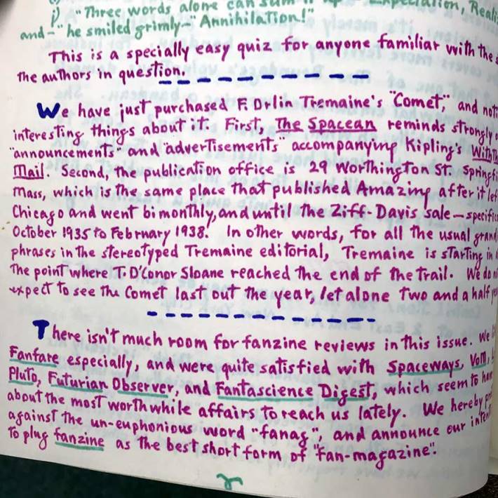 Photos by Jim Doran, 2018. A year later 'fanzine' had already escaped into the wild in what's the earliest use of it beyond our little sub-culture that I'm aware of (halfway down first column):