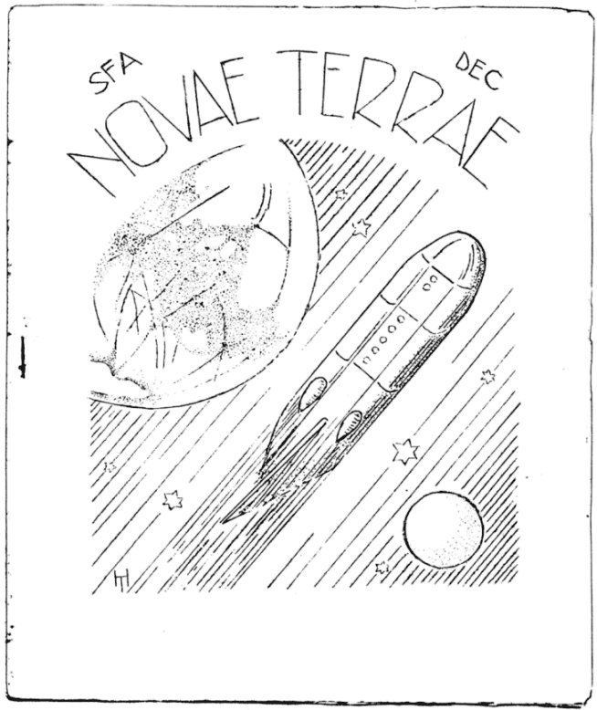 speculative I should say." "Well, that makes a bit of a change." "Yes, seems to be concerned largely with speculative fiction published in other books and magazines." "I suppose that brings it under the heading of a fan production?" "Artishooo! I guess so. You know, Jol, when you consider that all these stacks and stacks of duplicated stuff stored away here for lord knows how long were all turned out on cranky old machines that dripped ink and tore the paper to shreds every so many turns, it makes you marvel at the patience and devotion those people must have had to go on churning it out month after month." "And it makes you marvel that the British Museum troubled to collect it all and store it away in these vaults." "Yes, that's true. Poor luck for us they did. And just our luck to cop this job of cataloguing all this....mummified stuff. Thank God there were productions like this NOVAE TERRAE to lighten the task now and again!" "Uhu, but that's not getting the job done. Give me the number of copies and anything else worth mentioning, then we'll get on to that stack of Church gossip." "First copy brought out -- I can hardly read it, terrible duplicating .....'36. Says it's the organ of the Nuneaton Branch of the Science Fiction League, whatever that may have been. Twenty-nine issues." "You know, I like that word "science-fiction", it so describes the minds of that time -- you know, just on the verge of scientific discovery, half thrilled, half proud, sort of cocky about the possibility of their ultimate conquest over everything, and that phrase seems to illustrate how they grabbed this science and raced away with it in their imaginations as if they had known it all their lives."