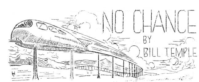 Bill is almost as inscrutable as The Smile of the Sphinx - which is perhaps why his mutant yarn was entitled. We are pleased to present a yarn by him, tho' not of "thought-variant" style but with sufficient twist to be good entertainment.FAR AWAY in the blue hills something silvery catches the light and flashes. In a minute it flashes again, and you perceive that it is rather nearer now. But still it is comparatiively remote, and whilst we await the approach of this mysterious thing, let us look around us. We are in City Walls, a township a hundred miles from The Citadel, which is the capital of this country of Arcadopia. And the exact time is three hours after dawn, December 1st, 2037. Great blocks of flats, built of white stone and metal, are spaced widely and geometrically for as far as we can see. Separating them are pleasaunces; lawns, trees and flowerbeds, fountains and pools-- but no ugly litter boxes, for no Arcadopian would ever dream of making litter. Even the trees only make litter on one day, Autumn Day (September 30th.), when they all shed their leaves simultaneously, a human improvement on the natural process. The sun is shining brightly from a clear blue sky, as it will continue to do until 13 o'clock. Then, in the lunch hour, the transmitter on ths roof of the Weather Control Building will broadcast a stream of electrified ions into the air. The cooling rays will be turned on. The moisture in the atmosphere will condense on these ions, and presently fall as raindrops. But the shower will cease promptly at 14 o'clock, for then the Arcadopians go into the gardens for their siesta. Now that swiftly traveling bright thing reaches us, shoots past like a rocket, and is dwindling away again in the distance before we realise what it is - - a streamlined coach of glittering chromium and steel and quartz, flying along an overhead monorail. It is quite a mile away before we fully grasp this. And thus we never realise how near we have been to Greatness....