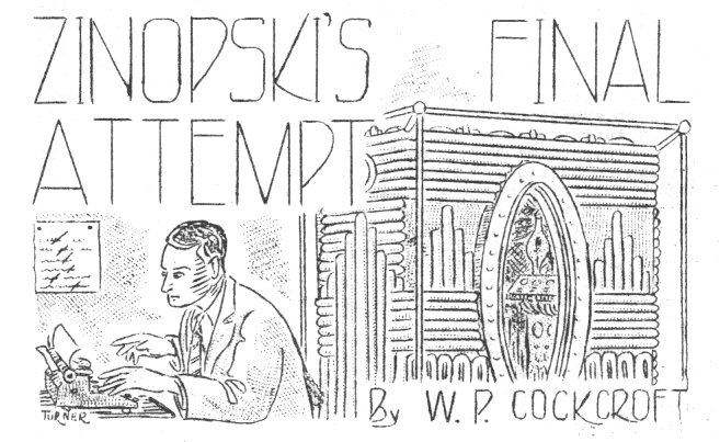 Jones, running his hand through his unruly hair, pushed his chair back and thrust his hands deep in his trouser pockets. No, he had not miscounted; there were 99 of them. 99 rejection slips! Such was his total score to date, and he wondered how many more he would amass. The thought of ever desisting before had never come to him; it was only the magic, figure "99" that gave it birth. "One more chance," he muttered to himself, "and then I have finished." He glanced through the slips again. One or two of them were different from the others, and these he put in a little pile of their own. After he had finished sorting them, he looked at these again. "Incorrect science in each case," he groaned. For a while he was content to stare at them in fascinated silence, then he bundled the lot into a drawer, jumped up, and started the gramophone. Almost immediately the strains of "The Ride of the Valkyries" rang through the room. It was a while before the music found an answering echo in the rattle of the typewriter keys. By the time he had really got going the record had ended. He re-started the record and returned to his desk. This time there was no hesitation. It is possible that the speed at which he typed exceeded the wildness of the music . He did not rise when the record ended. But presently the harsh grating of the needle near the centre of the record slackened, to die at last in sullen silence. And still Jones, who used the name "Zinopski" in an attempt to persuade editors that