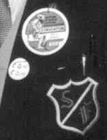 So far I have only mentioned a few of those who were at that particular party as the crowd kept ebbing and flowing. I do know that at one point in the evening someone counted noses and discovered there were 40 fen in the room! Through it all Eddie sat on part of the bed looking so forlorn; all he wanted was the chance to go to bed and sleep. I gave up fairly early in the proceedings going to my room about 2-30a.m. I know there were parties on the go for much longer than that, but there was the rest of the weekend to go. JOE PATRIZIO: I sat next to Brian Jordan, who offered an almost empty bottle of Brandy. I, of course, refused and delivered my speech on the evils of alcohol...I don't like Brandy. I was then shown a glass with a ¼ inch of liquid, and told "That's all the Drambhuie there is". Not liking this either, I poured it on Dave Hale's head. I got the impression he was not too keen on the stuff either. Things seemed to go with a swing after this, everybody indulging in high quality fan-talk. I then took an intense dislike to Alan's hat. I grabbed it, dropped it on the floor and stood on it. Soon there was a queue of people waiting to stand on Alan's hat, much to his complete disinterest. The idea grew that it would be a good thing to auction it for TAFF. Ron immediately took this up and called for bids. These were a bit slow in coming, and 1/- was the highest anybody was prepared to go for the monstrosity. Ron was trying everything in the book to get the bidding up, he turned to me and said, "I will even accept postal bids". Reaching for the nearest typewriter I hurriedly typed a note to say I had no intention of bidding. Ron was a bit peeved at the wasted time. Then came his most brilliant idea - group bids. The hat was passed round and everybody contributed to the total, even Alan, we found that TAFF was richer by 12/-! Now came the tricky part, who was to get the hat? Dianne made some silly suggestion about giving it back to Alan, but was shouted down, when I made the obvious suggestion that we each have a piece. Scissors appeared from nowhere, and Ron divided it up. I managed to snatch the hat band which hangs proudly on the wall before me as I write. Even Alan got a bit... It was rather noisy by now, and made noisier by a banging on the door. It was the harbinger of our first complaint. One of the permanent guests had seemingly had enough of the racket, and' started laying down the law about the right to get some sleep etc. Mumbling curses quietly under our breath, we departed for more sociable parts. Ella decided. to get some sleep, as did Ted and some others, even though, it was only 1.30 am, but the rest of us did not go for that. As we wandered down the corridor, we bumped into Norman Shorrock, who waved a bottle of something at us and said there was a party in his room.
