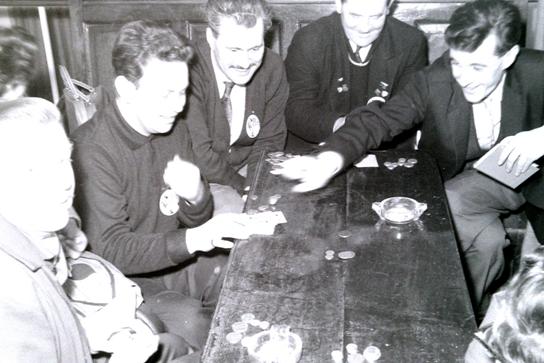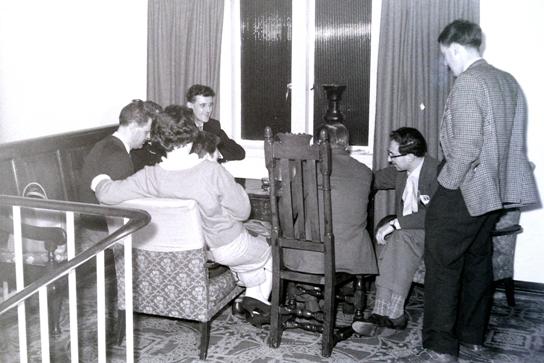 Card game on landing with George Locke standing (ww)