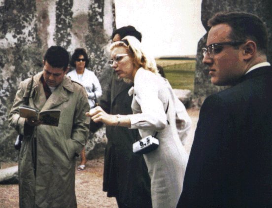 Carol and I began by flying to Paris, where we rendezvoused with Ron Ellik, Al Lewis, Boyd Raeburn, and Lois Lavender, who'd been touring France for a couple of weeks already; we spent several days touristing around Paris with them, visiting the Louvre and so forth. One night we visited a three-star restaurant and I had my first taste of meurseault, a white wine that I loved even though I still can't spell it. Afterward, we repaired to Carol's and my room to drink a bottle that Ron had bought earlier, but when he tried to open it using a device that pops out the cork by injecting gas beneath it, the whole bottle broke and we had to end the evening early. In the next couple of days we touristed with Boyd alone, the others having gone before us to London, and mainly I remember waiting on a chilly afternoon while Boyd photographed some statues in The Tuileries; Boyd took a lot of time getting his light-readings and such right and I, shivering, swore a mighty oath ('By Ghu!') that his pictures had better be worth it. (They were; Boyd sent them to us later and they're now in one of our photo albums.) Thence we went to London by train, passing through many fields of French produce, mostly grapes, though I was pleased when we stopped at Amiens, where Jules Verne's tomb is, according to what I've read in ancient Gernsback magazines. We didn't have time to get out and look, though; we continued to the French coast and took a boat to the white cliffs of Dover, which really are, and thence went by train to London, where Carol and I stayed with Arthur and Olive Thomson for a day or two and Arthur showed us around London; we went on a trip on the Thames, for instance, and I remember Arthur's marvelous impression of a cockney's directions around London: 'You take the Firty-free bus,' etc. That night there was a small party at Ethel Lindsay's place where Ron Ellik said many hilarious things none of which I remember, and Arthur did the same with ditto memory results, and we heard lots of gossip about then current London fan politics, all of which I forgot almost immediately. It was hilarious, though, I assure you.