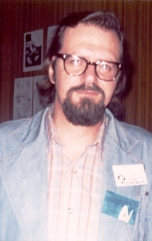 KEV WILLIAMS: We hired an outfit called "At-Your-Service Security Ltd" , prop. R. Lee Smith (ex Met. Pol.). R.Lee fitted the expected image perfectly. Take one part of a Dixon of Dock Green flatfoot, add a dash of N.C.O. and a sprinkling of Montgomery of Alamein, and you have R. Lee Smith. 7 feet tall, 4 feet wide, size 12 highly polished black brogues which clicked with military precision when he walked. He was kitted out in a fine, elaborate uniform which held the appearance of authority, without looking too much like a proper police uniform (which is illegal) or a cinema commissionaire (which is just silly). A more helpful, friendly and co-operative 'security operative' we could not have wished for. He marshalled a curious motley team of seven caretaker types on the fringe (or passed it) of retirement and a couple of chirpy young suvverners [ie. Cockneys]. But they knew every nook and cranny in the Exhibition centre - nothing moved that they didn't know about. They were vigilant and co-operative. The fans really took to them. They really took to the fans - old R.Lee himself was amazed by the things going on around him- half naked nubile young slave girls fetchingly beribboned with leather straps, thongs and leopard skins got him to pose for photographs with them. Even the Beeb filmed him, though I guess he ended up on the cutting room floor (unfortunately not with a slave girl). They caught a gang of petty thieves pinching boxes of books late one night in the bookhall. Their feet never touched the ground. They were in court the next day. PETER ROBERTS: The evening ended up with a quiet brag game – Norman Shorrock and I wandered downstairs at about 5:30am and appeared to be the last still up. More fools us, but the con had seemed to start well.