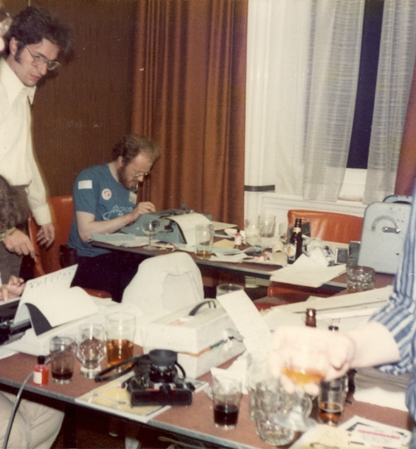 This report is a mosaic composed of excerpts large and small from a number of contemporary accounts. A listing of these with links to the full originals can be found here. Photos used are from the following collections: Colin Harris (ch); Rob Hansen (rh); Mike Meara (mm); Arnold Akien (aa) Doreen Rogers (dr); Debbie King (dk); Ned Brooks (nb); Frank Olynyk (fo). Peter Weston gathered all these for use in fanhistorical projects such as this and copied them to me but he didn't include initials on every photo, hence some here that are unattributed.