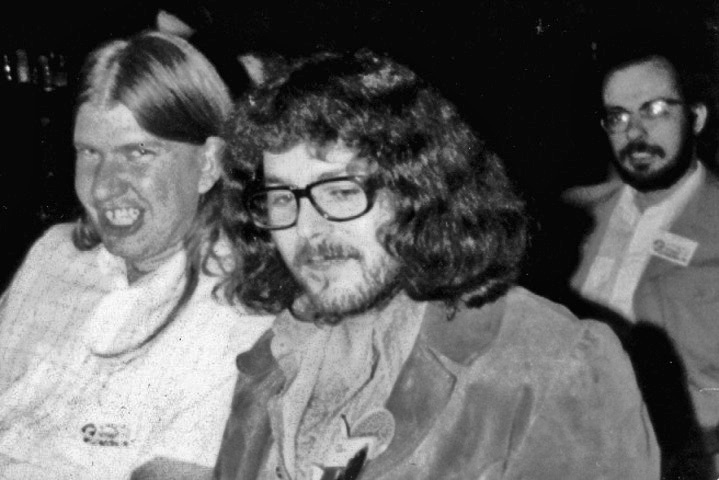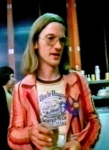 PETER ROBERTS: It started to dawn on me that Seacon 79 was going to be a bloody big convention when I arrived early on Wednesday afternoon and found the Metropole already crowded. Behind the scenes, however, the programme halls were still empty – all clacking footsteps and echoes. Though there was a frenzy of activity in the fan room, putting up displays and the like, the place still looked forbiddingly vacant and austere. Still, it was only Wednesday: time to meet a few people – John Millard with camera (he's thinking of producing a photo-book) [Millard was stationed over here with Canadian forces during WW2 and contacted UK fans of the time]; Ted White, tickled pink with his new job at 'Heavy Metal'; Rich Coad, back over here at last; Mike Glicksohn, soon to be seen in his Demis Roussos caftan (he didn't sing, thank God);