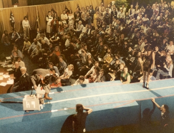 part of the hall reserved for competitors after they'd paraded. Instead there