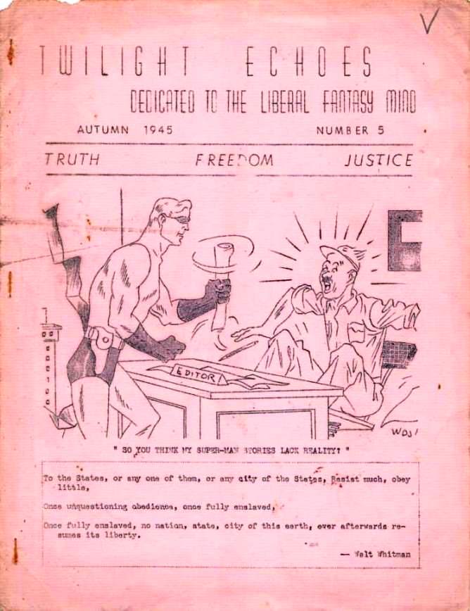 APPROACHING XERO - related artwork1. SF Fandom and the First Comics Fans A costumed hero appears on the cover of Joe Fortier's TWILIGHT ECHOES the earliest I've found to make the cover of a zine:
