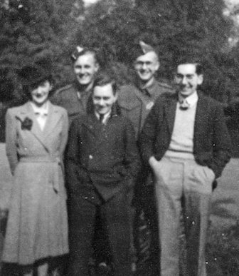 The weekend meetings were rather dizzy affairs. Despite our attempts at planning, nothing went to schedule. Joan Chapman called me up on the phone early Saturday to say that Ken had been posted farther afield -- a postal from Joan Temple in Cornwall stated Bill's leave had been put back two weeks. It began to look as though there would be very few at the meetings. Anyhow, Saturday's noon meeting brought Maurice Hanson -- the first time we had seen him since before Dunkirk, when he was home on leave from France. He looked fine, having filled out and become quite a tough looking customer. Frank Arnold was there, still as dynamic a personality as ever. Bob Gibson arrived okay -- a tall, slow speaking Canadian, with a memory for authors, stories and magazines that licked all our attempts.