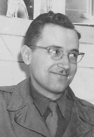 Lives there a fan with soul so dead who never to himself hath said, "What if I should be inducted - and stationed at Ft AckArthur?!" The answer - surprise! - is YES. The fan has been found. Bill Rotsler, our cover artist this issue, was taken from the ranch in Camarillo, Cal., a couple weeks ago, and processed at Mac. It was not until the day before he shipped that he thought about Ack! Instead of KP he could have been on the STF detail, he could have drawn pix all week instead of pots; I could even have fixed it for him to get a mid-week pass (not ordinarily permitted inductees) so he could have come to the Club and met the fans. As it was, he only got to talk to Laney on the phone, and meet me briefly before boarding the train for Docpin. On New Year's Day 1945 Alden Ackerman, a Pfc with the 42nd Tank Battalion 11th Armored Division and Forry's kid brother, was killed in action in Belgium during the Battle of the Bulge. The news took several weeks to reach Forry, who reported the death in 'The Alert' and in VOM #39, which featured him on its cover. Ackerman later announced he would also be starting ALDEN PRESS, whose first offering in March was a memorial to Alden. Forry's request to Robert Heinlein for a contrubution resulted in this utterly despicable letter from Heinlein. Towards the end of the year, in FANEWS #242 (Nov '45) editor Dunkelberger reported: