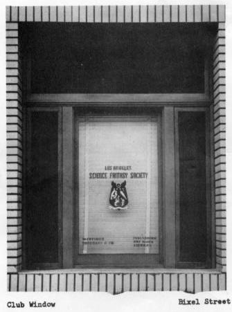 "...someone of other was in the clubroom nearly every hour of the day and night. So many of the members lived right there in the neighborhood; Brown and Kepner across the street at 628, Morojo next door at 643, Daugherty three blocks down the street, and Fern a ten minute walk away. Yerke, Bronson, Chamberlain, Benson, Russell, and Freehafer used the place a great deal as a meeting point to rally around a party to go to the theater or symphony; and Ackerman commuted nearly every night from Fort MacArthur, often spending the night next door on Morojo's and her cousin's guest couch. Then not only did many of the members work screwy shifts, but then as always fans were notable for absenteeism, skipping work at any time for any reason or none. In those first three months, I doubt if I ever spent more than an hour in the clubroom without being joined by one or more other members. The evenings especially saw the premises crowded; many of the members were actively engaged in publishing, kept their typewriters and other equipment right there in the room; there was usually someone reading something out of the club library; and of course the usual droppings in and out."
