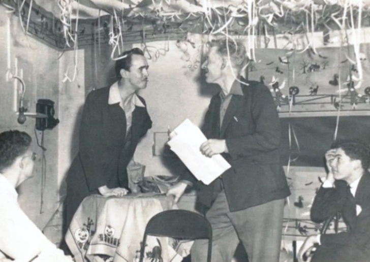 March 1945: Laney was director of the LASFS and was the leader of a strong clique composed primarily of Kepner, Saha, Elmer Perdue, Brown, and -- to a certain extent -- Nieson Himmel and myself. Around the same time Tigrina (Edythe Eyde) also arrived. Which meant that two significant early gay figures were now members of LASFS at the same time. Had things worked out differently, there could have been a third. Shortly before Easter 1944, Frank Robinson had visited town. Unfortunately, he arrived at a time when LASFS was convulsed with feuding, various factions within the club at each other's throats. As Kepner later recorded: