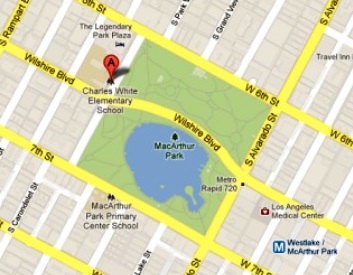 (Westlake) MacArthur Park with Wilshire Boulevard