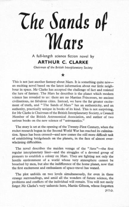 advertising insert such as the one for 'Sands of Mars' included below. This particular