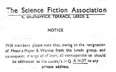 LIBRARY: We have been considering tentative schemes for the inauguration of a library. It is proposed that this should consist mainly of British scientific fiction books - not American magazines - together with club publications, and oddities such as author's manuscripts, British journals containing science-fiction, etc. It is also proposed that the library should have a sub-section of purely scientific books.