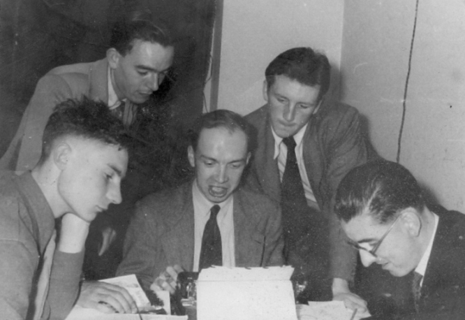 ![]() Thinking I'd find some familiar names, not knowing even if you, Walt, were alive let alone your address, I borrowed Terry's BSFA material. You, Bob, were BNF'ing it (I saw Terry's copy of your Con speeches.... marvellous) but not a single other name I knew; I even joined the BSFA to get more material, which shows you I was getting awfully serious about reentering some sort of fandom. I was somewhat dismayed by various fanzines I read, but after further research found that in this 1980s fandom no one seemed to like anything (except Bob Shaw's speeches) so subscribed to TWLL DDU and ANSIBLE. As luck would have it, the first ANSIBLE I received shortly afterwards had a news item that read..."Sandy Sanderson & his wife...showed up (at the Denvention) from Long Island gafiation for the first time in 20 years...." It says something for my return to some sort of sanity that this only caused shivers for an hour or so, and this mainly because of the faint intimations of some sort of telepathic resonance.... weird. And I couldn't get any damned addresses of people I wanted to write to. I wrote a letter to Malcolm Edwards and received a copy of TAPPEN 3 this last weekend, and still no familiar fannishness. And tactful Terry said he was still trying to find your address, Walt.... reckon he wanted to shield me in case you didn't want to correspond. Oh yes, and during the summer I've had some correspondence with Phil Harbottle, erstwhile editor of VISION OF TOMORROW and full-time Fearn fanatic. He wanted information on pseudonyms of Fearn and whether I'd been 'Inquisitor' (and why had fandom had a grudge against JRF??) His letters sent me really re-raking over the fanzines I'd already gone through for Terry and his Tribute, and completed some of the work in getting me to face the past that Terry had started. I still have some memory scar tissue though...blanks I am only slowly penetrating. (I wonder If I could get a scholarship to the Church of Scientology?) Harbottle to me: "Despite your protestations of lack of bibliographical interest or insight during the '50's, some fascinating snippets are scattered all through your writings. ((-Ah, egoboo after all these years"-)). Witness, for example, your own souvenir booklet of the LONDON S-F CONVENTION 1952. It is fannish all right, but it packs in loads of historical insights, quotes etc. ((-Y'know, maybe Fearn wasn't so bad after all.-)) Plus the kind of tantaliser which is one reason for my contacting you: Page 7 "John Brunner introduced himself as probably the youngest pro-author in the country, having had stories (Note plural - PH) published under the 'Gill Hunt' housename at the age of 17...(At this point I find that the scrap of paper on which I was taking notes covered with a rather obscure Willis-Clarke combination running 'A nice Gill, but one of the droving kine' (presumably a typo for 'droning kind'). You see what I mean? Yours is the only reference to Brunner's early work that I've been able to find after searching scores and scores of '50's fanzines ((-certifiable?-)) and instead of recording the first novels of someone who became and is one of the most important sf writers in the world you cock it up with a Willis pun! Now we'll never know!" ....and goes on to say can he borrow the Willis Con report in QUANDRY ((-spelt right-)) if I have it.... Me to Harbottle: " I've looked through about 95% of British fanzines Published in the 50's and I'm afraid that I have to confirm What you expected; no one except myself really took much heed of John Brunner's True Confessions...John was very young...wasn't taken seriously...enclose photograph...with other Junior Fanatics. Also, you're guilty of selective reporting as you didn't mention the rest of my comment..."I mention this to show the difficulties under which I was trying to memorise a coherent account." Shame! I'm enclosing the Willis report. Also, while we're on the subject, you do me an injustice. "...one of the droving kine" was a painful play on words, not a collection of typos. In those days, there was what is now termed a 'pop' song (popularised by Guy Mitchell, I seem to recall) which contained the words "she was a nice girl, but one of the roving kind." There was a tenuous connection between 'Gill' of milk) and kine (cattle) which needed working on and which is all now very anachronistic, which probably accounts for the fact that our minds weren't fully on the speaker. (I now attempt TIMES crosswords)." Appeal to Fandoms Leading Expert and Critic, and Fandoms Bleeding Expert on Puns.... is explaining a pun 29 years after birth a record? (or disc-covery!) I'd have loved to see Phil Harbottle corresponding with Chuck in his prime. Well, I'm more or less up to date in this letter. A few current notes. Bob, your letter (to me) was better than your books, and I think *they're* terrific. To think that the Bob Shaw, to whom I had to explain once that lightning really *killed* people in this country, wrote all that, has appeared on TV...it makes me feel all grandfatherly. I've a real fannish foto taken here, showing a one shot being hammered out here with Frank Robinson (of Cardiff), Jim Rattigan, Mike Wilson (where...?), self at typewriter and you in the background with that quizzical air... beautiful.